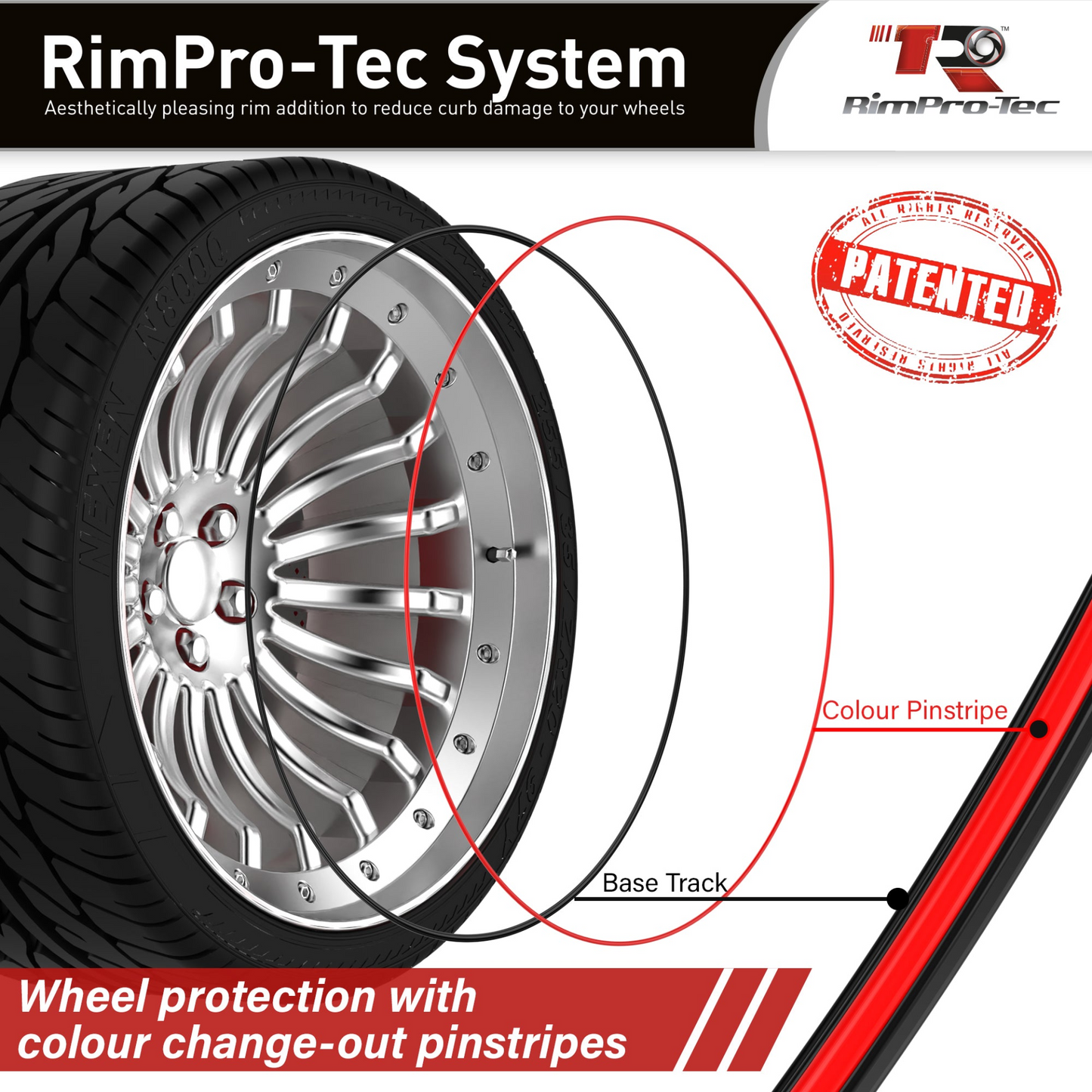 Unique cut to fit RimPro-Tec is an easy to install color styling accessory for the outer rim of your alloy wheels that are available in 12 different color combinations.