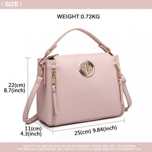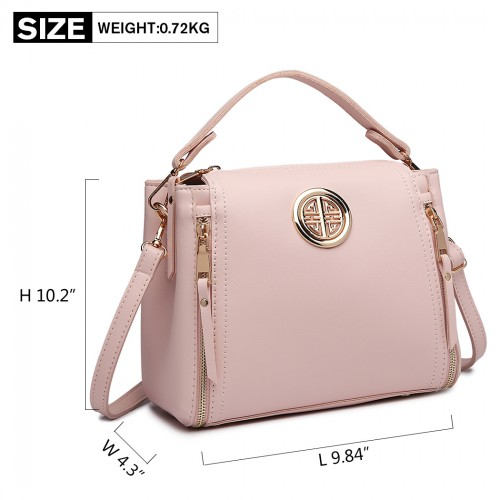 E1851 - Miss Lulu Leather Look Dual Zipped Handbag - Pink