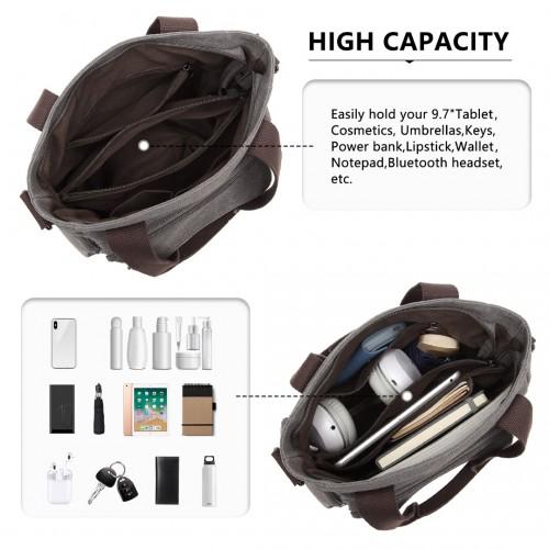 EB2125 - Kono Large Capacity Multi Compartment Canvas Crossbody Tote Bag - Grey