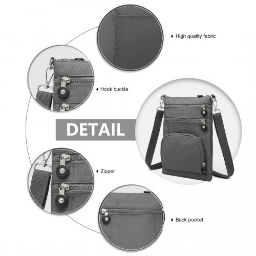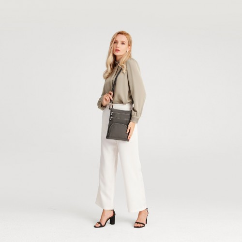 EB2228 - Kono Casual Multi Pocket RFID Blocking Cross body Bag - Grey