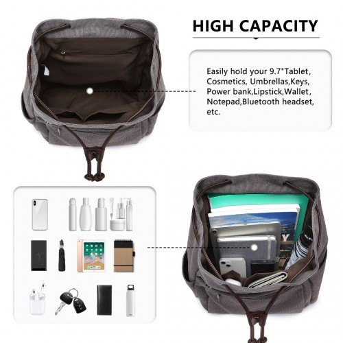 EB2233 - Kono Canvas Clamshell Drawstring School Backpack - Grey