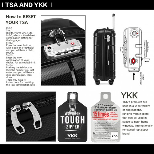 A TSA accepted fixed 3 dial combination lock to offer maximum security. This lock allows your luggage to be unlocked and inspected by security authorites without damage.