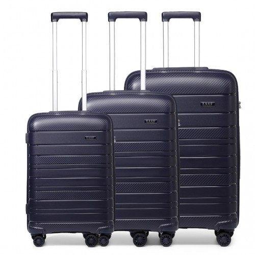 K2091L - Kono Multi Texture Hard Shell PP Suitcase 3 Pieces Set - Classic Collection - Navy