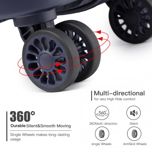 4 x 360 °swivel wheels distribute the weight of your suitcase evenly and ensure easy gliding through busy airports or train stations.