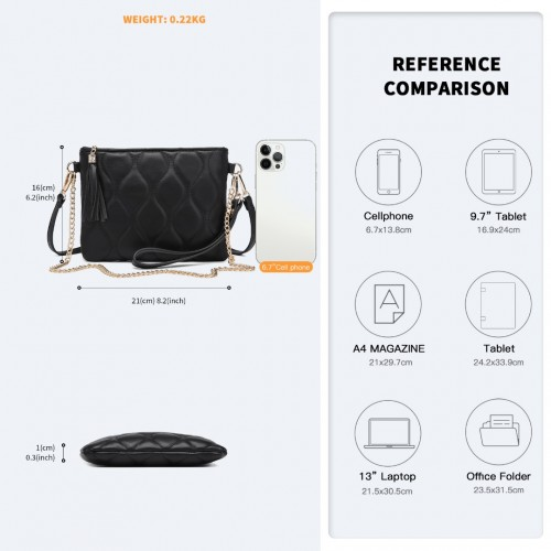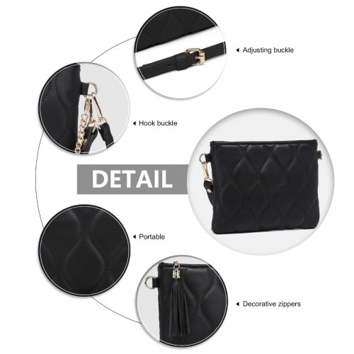 LB2247 - Miss Lulu Small PU Leather Soft Crossbody Bag - Black