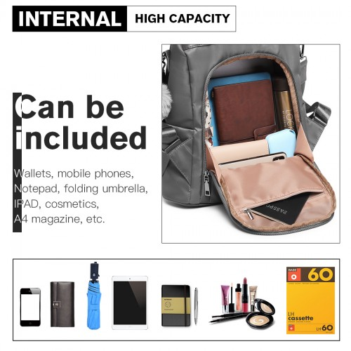 LG1903 - Miss Lulu Two Way Backpack Shoulder Bag with Pom Pom Pendant - Grey