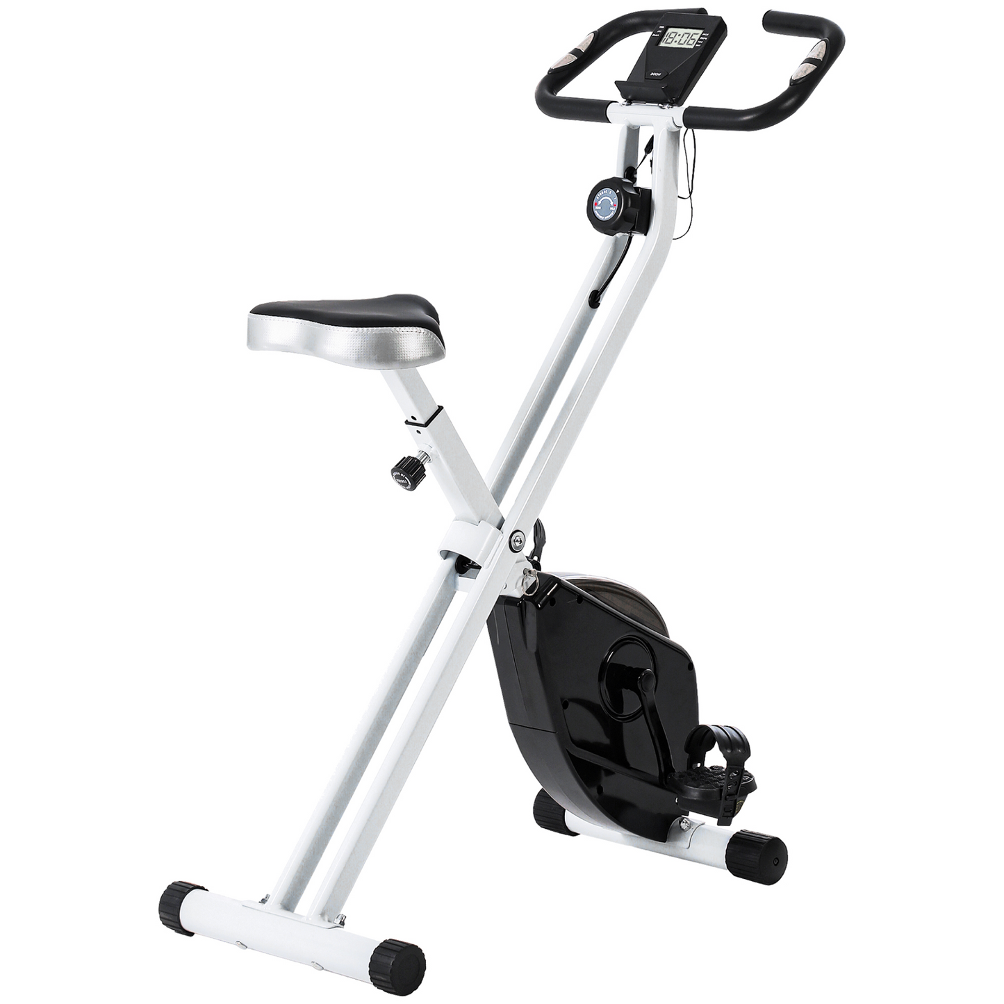 SPORTNOW Folding & Quiet Exercise Bike with 8-Level Magnetic Resistance and Heart-Rate Sensor for Home Gym, Black and White