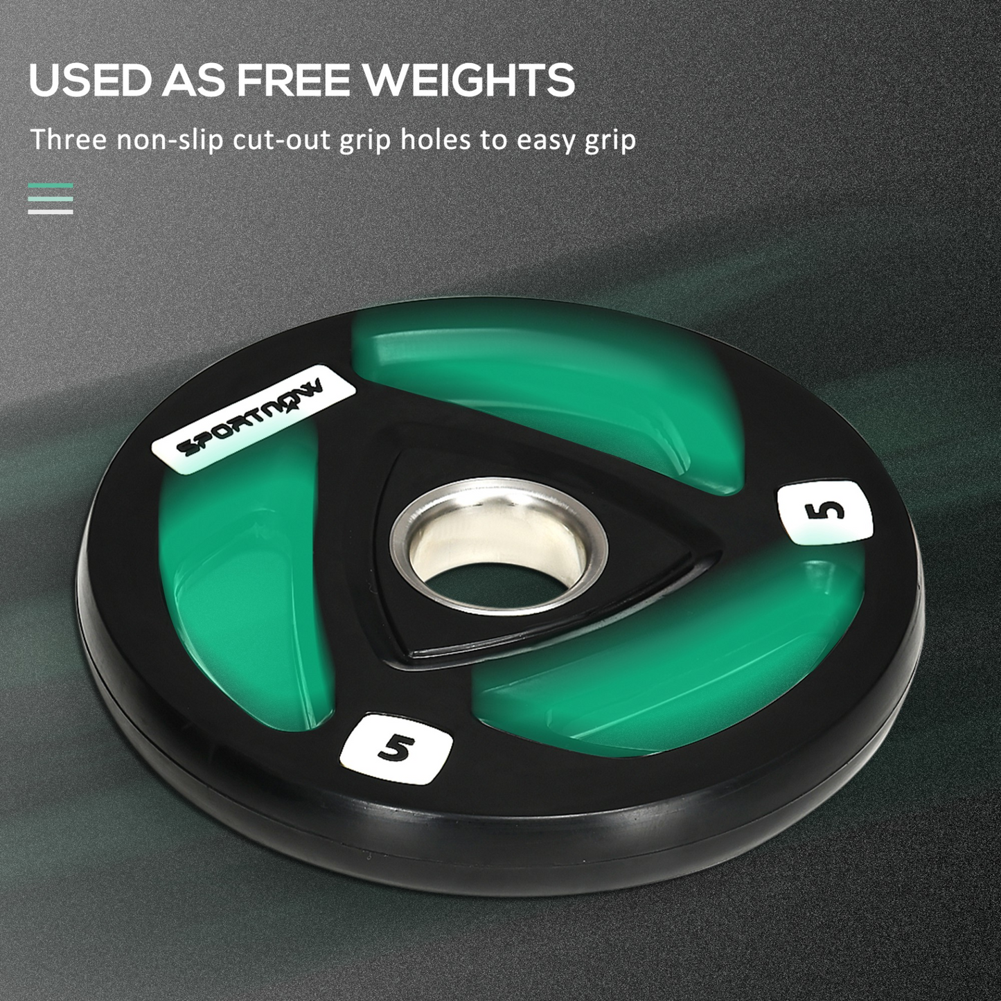 - Three grip holes: Grab the weight plate from the centre, so you can use them without the barbell – great for lateral raises, plate rotations, chest presses and more.