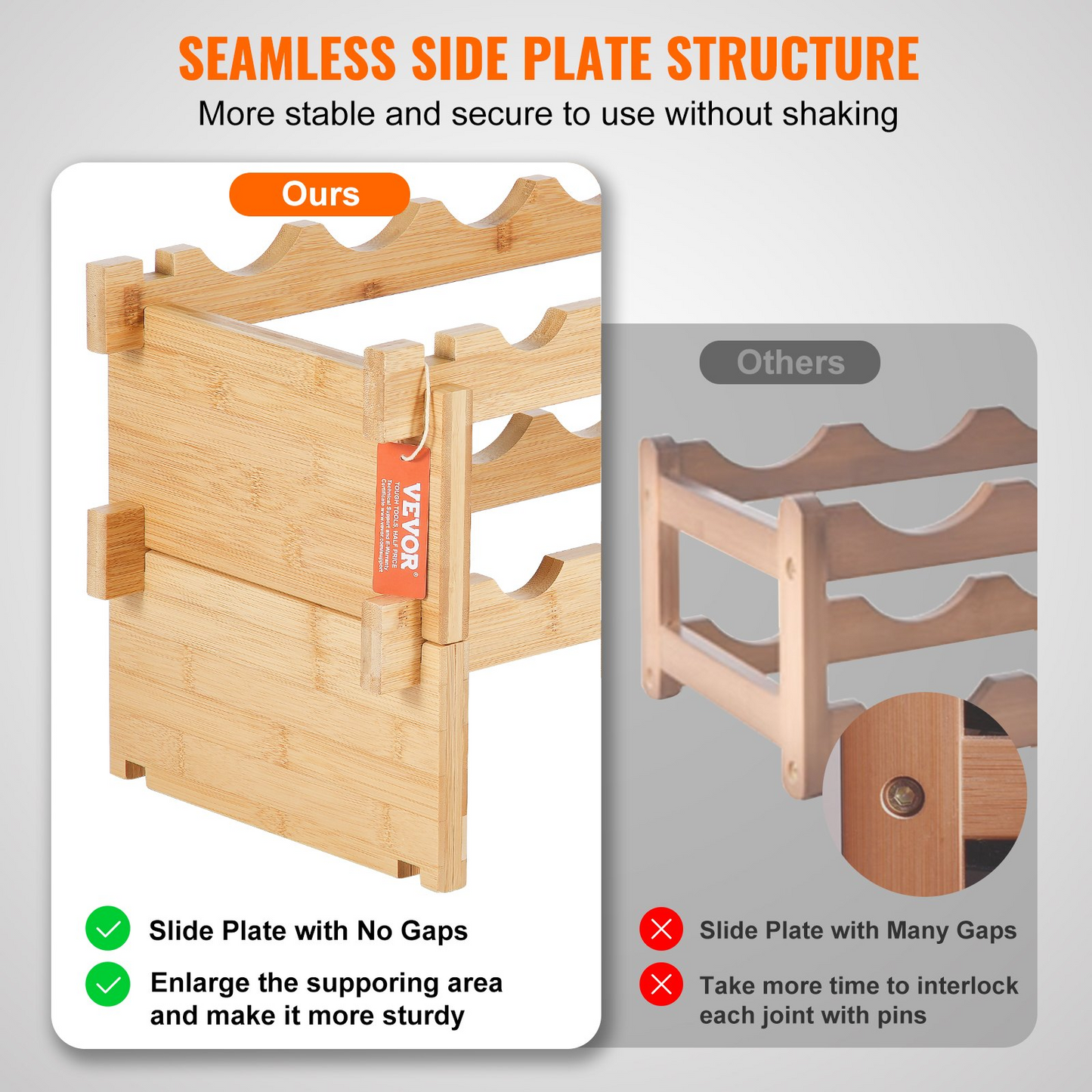 VEVOR 18 Bottle Stackable Modular Wine Rack Bamboo Wood Display Shelf 2-Tier