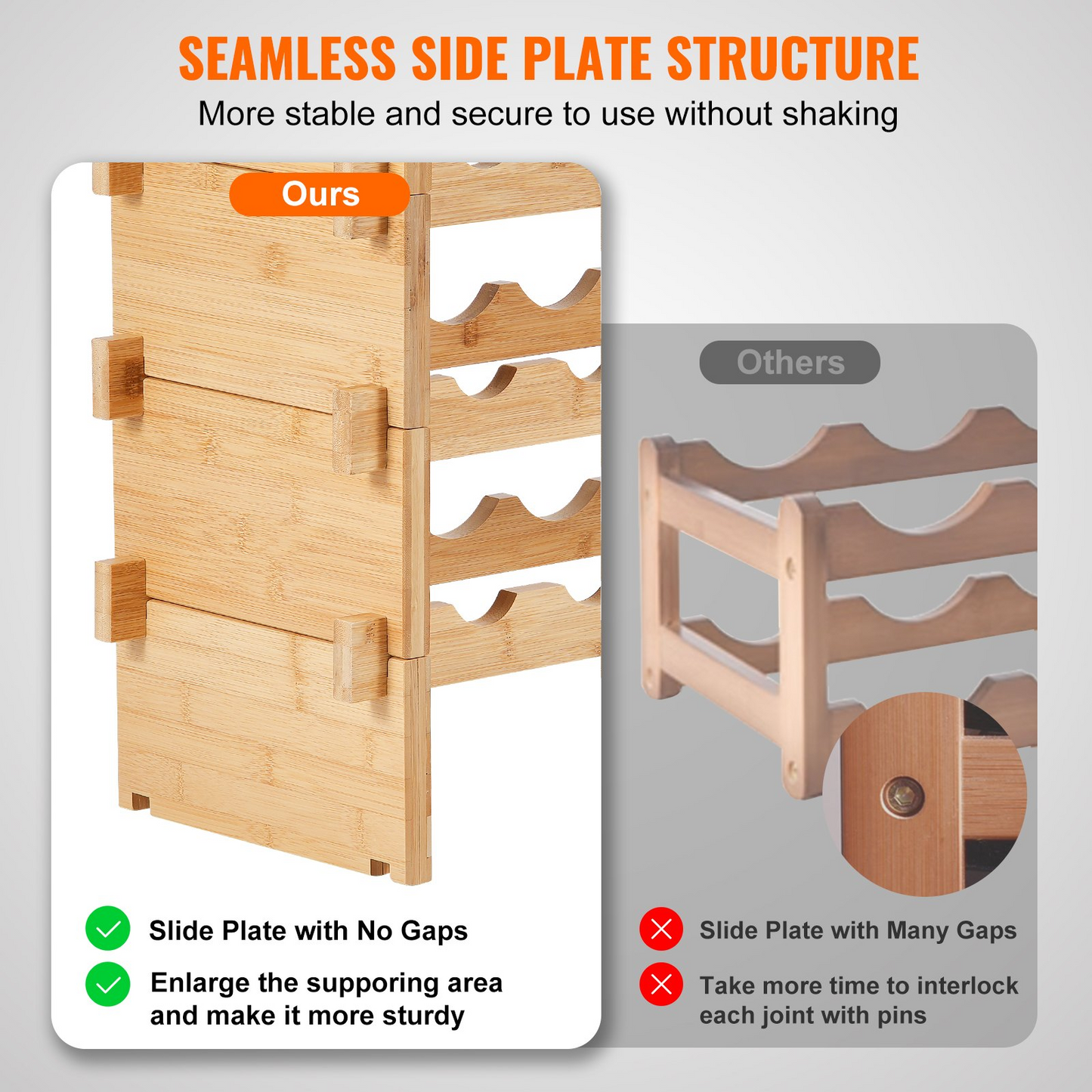 VEVOR 36 Bottle Stackable Modular Wine Rack Bamboo Wood Display Shelf 4-Tier