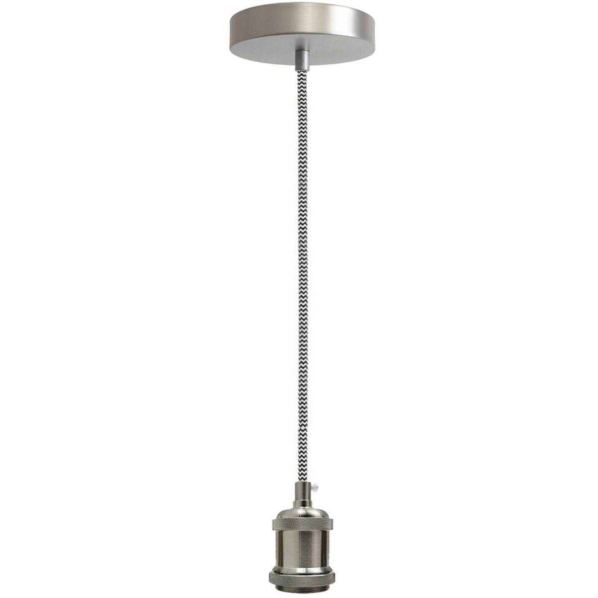 1m Black & White Round Cable With Satin Nickel Pendant Holder~1696
