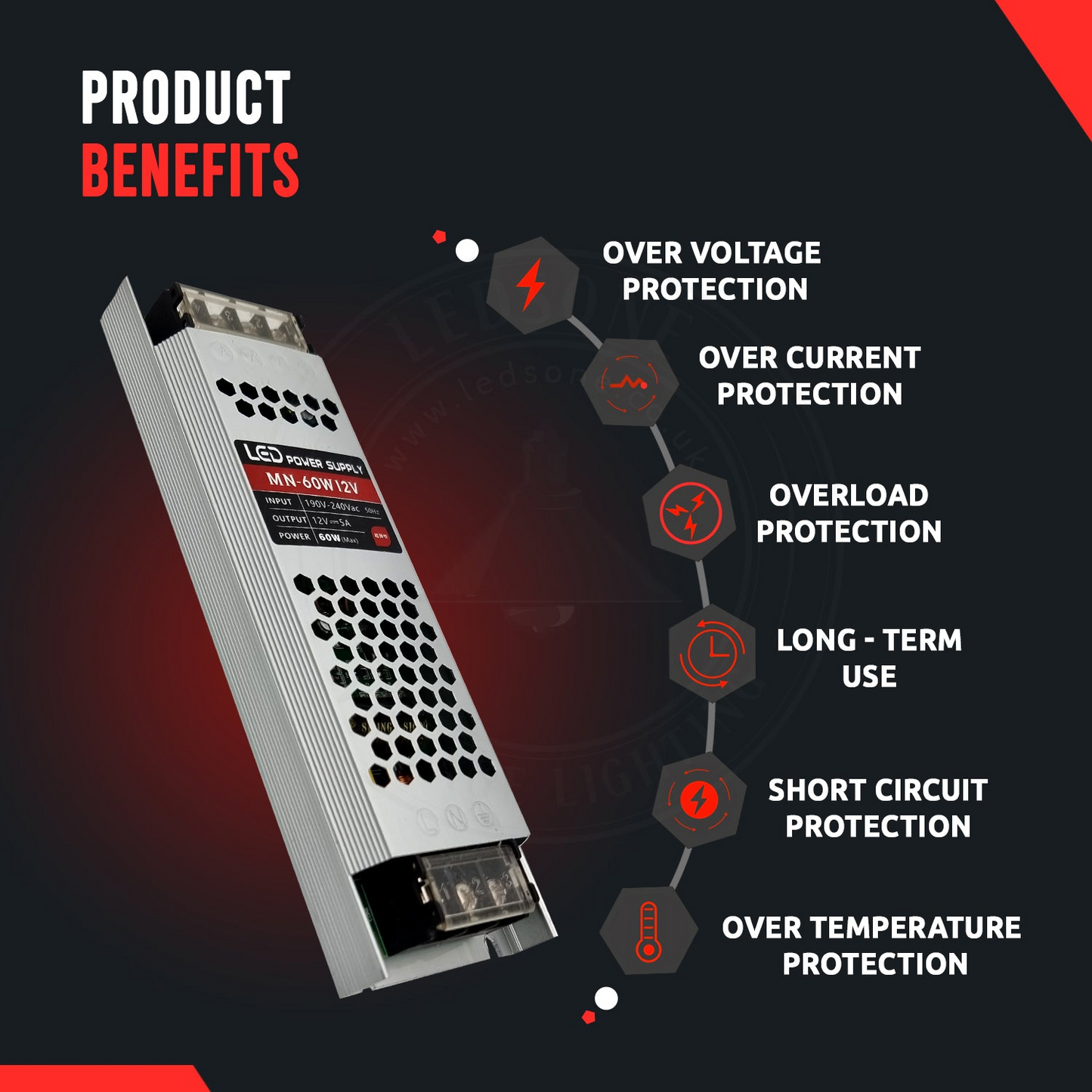 DC12V 60W Ultra Slim LED Driver Power Supply Transformer 240V for LED Strip~2358