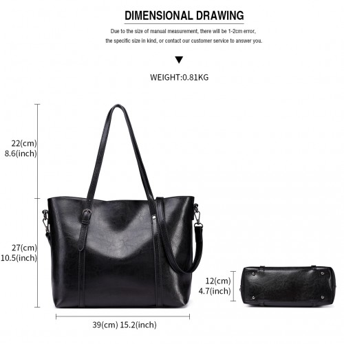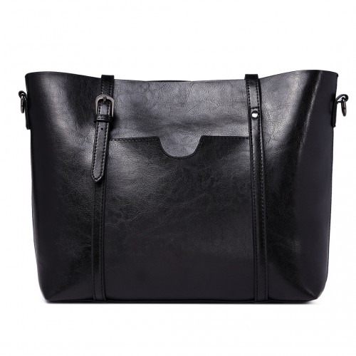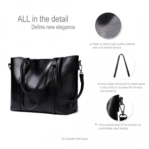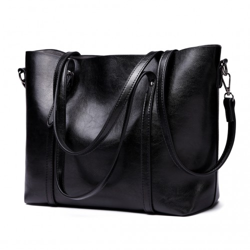 E6709 - Miss Lulu Trendy Womens Tote Bags Wax Leather - Black