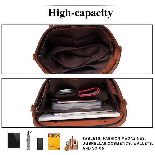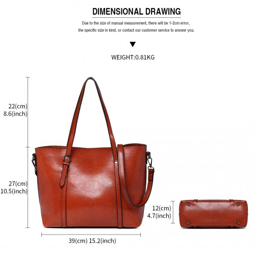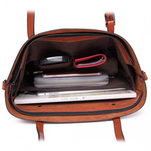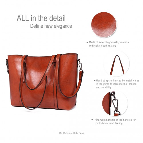 E6709 - Miss Lulu Trendy Womens Tote Bags Wax Leather - Brown