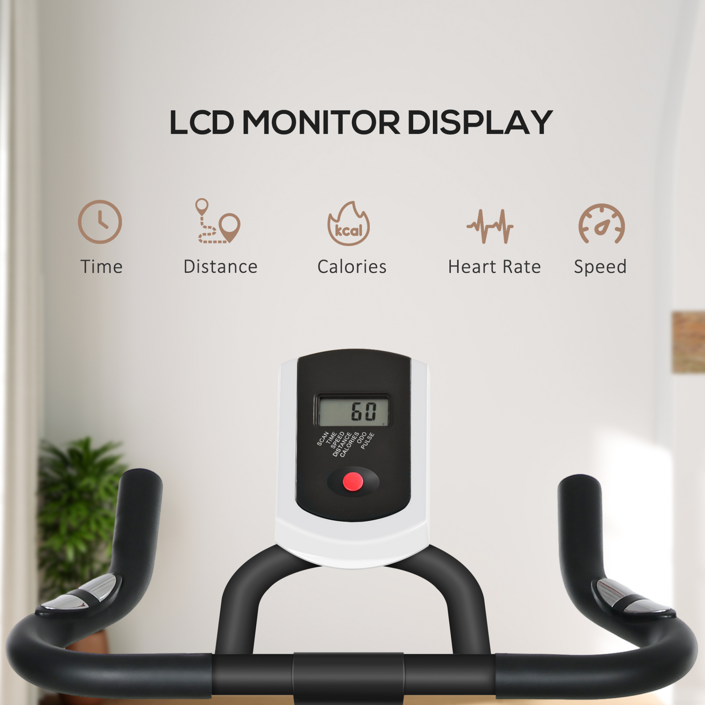 - Monitor with heart rate sensor: The indoor bike's LCD screen shows time, speed, distance, heart rate and calories burnt. With hand pulse handle, real-time know that your heart rate changes with the rhythm of exercise.