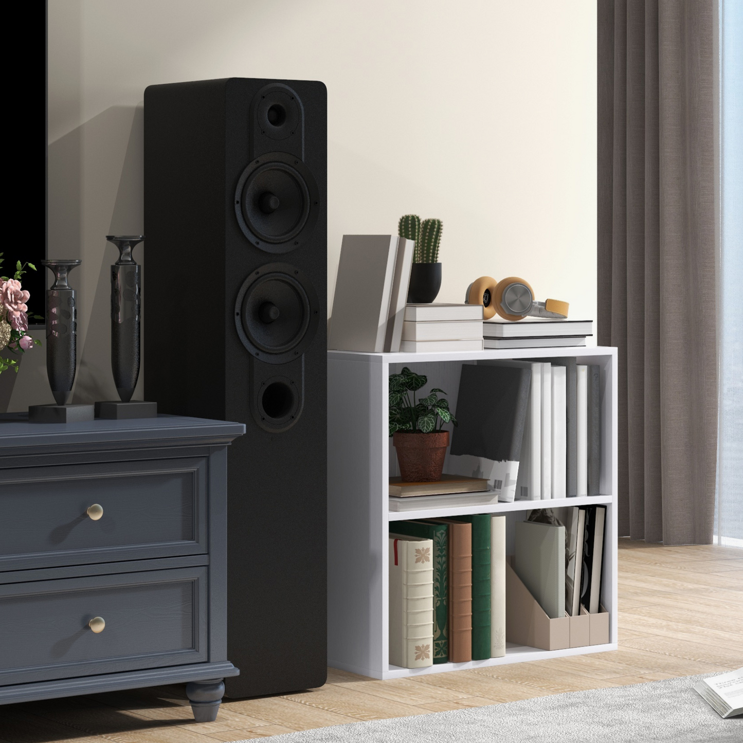 HOMCOM 2 Tier Bookshelf, Low Bookcase with Adjustable Shelf, 2 Compartments for Home Office, Living Room, Study in White