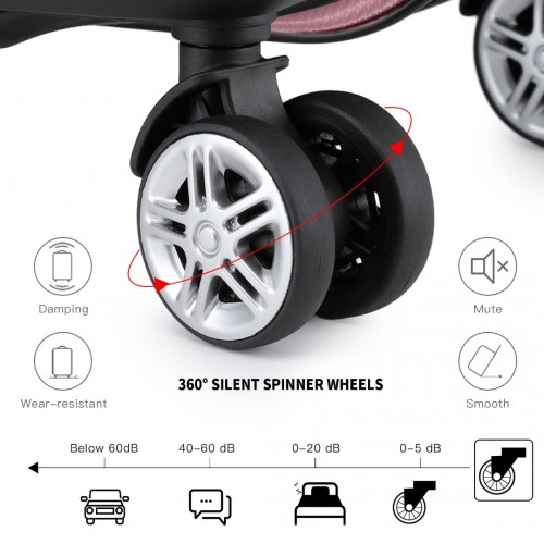 4 x 360 °swivel wheels distribute the weight of your suitcase evenly and ensure easy gliding through busy airports or train stations.