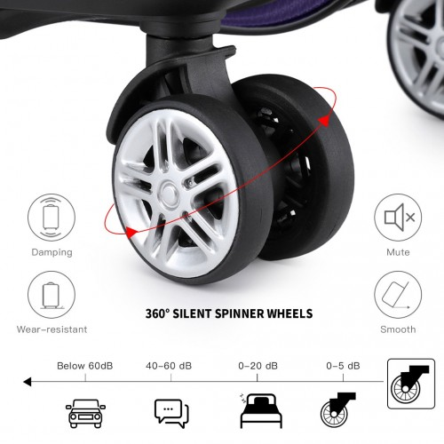 4 x 360 °swivel wheels distribute the weight of your suitcase evenly and ensure easy gliding through busy airports or train stations.