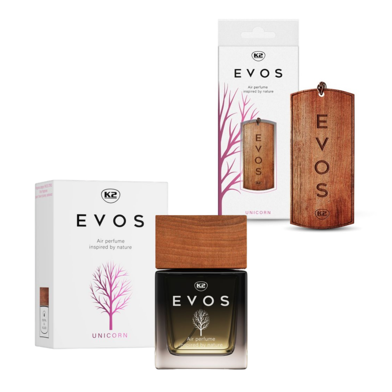 Elevate your car's atmosphere with the K2 EVOS Unicorn Air Freshener Bundle, a perfect combination of elegance and refreshing scent. This bundle includes the stylish K2 EVOS Wooden Hanger Air Freshener and the matching 50ml Unicorn Perfume, offering a consistent and long-lasting fruity citrus aroma for your car.