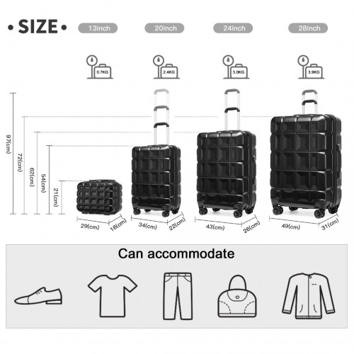 K2292L - Kono Lightweight Hard Shell ABS Suitcase With TSA Lock And Vanity Case 4 Piece Set - Black