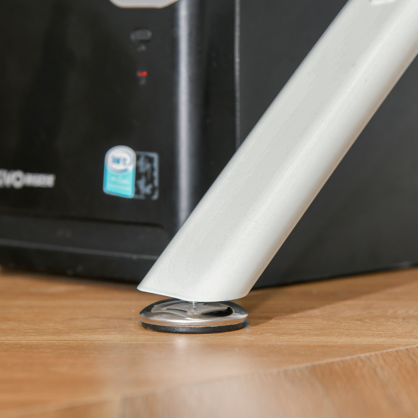 Modern and sleek, this work desk from HOMCOM looks as good as it feels when working, supporting you properly when you need to focus hard. Its 'L' shaped design fits perfectly into corners to help utilise space more efficiently. The frame is made from steel frame for a tough structure, fitted with MDF shelves so you can work well. There's plenty of space to work and have your computer and other devices on top. It's finished with a three-drawer cabinet so you can keep papers and more safely stored.