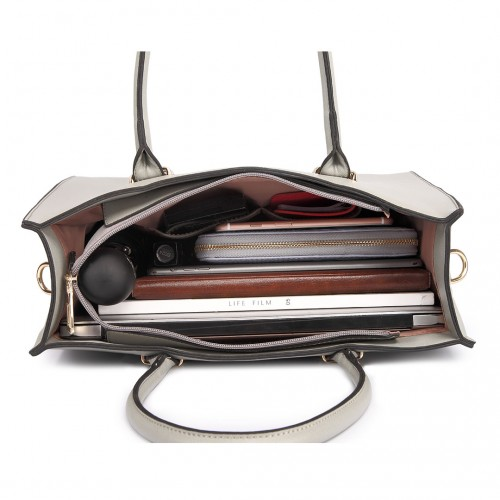 L1509 - Miss Lulu Leather Look Classic Square Shoulder Bag Grey