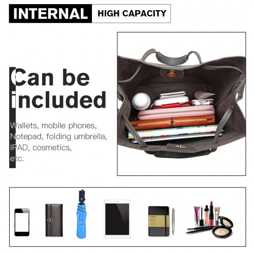 LB1937 - MISS LULU 4 PIECE SET SHOULDER TOTE HANDBAG - GREY