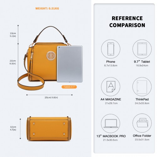 LB2126 - Miss Lulu Leather Look Practical Crossbody Bag - Yellow