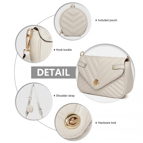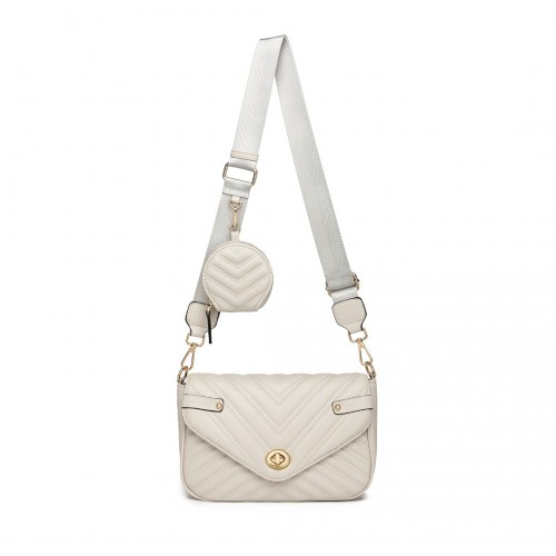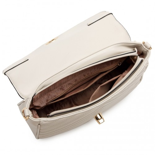 LB2138 - Miss Lulu V-quilted Flap Leather Shoulder Bag - Grey