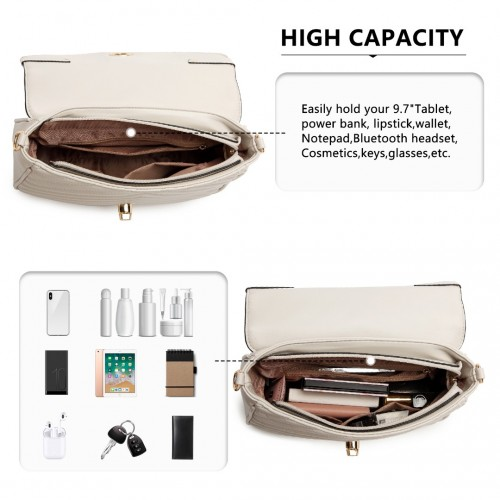 Ample space for your essentials: phone, purse, keys and cosmetics/toiletries.