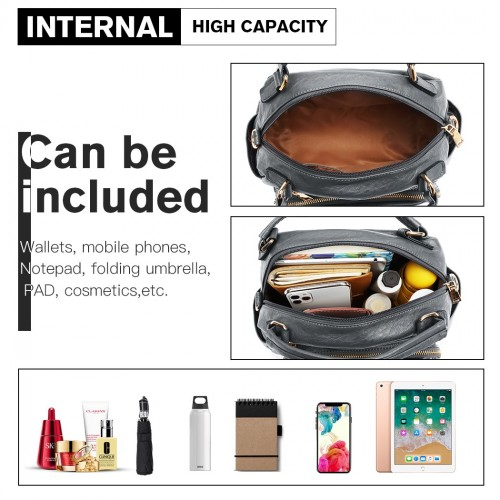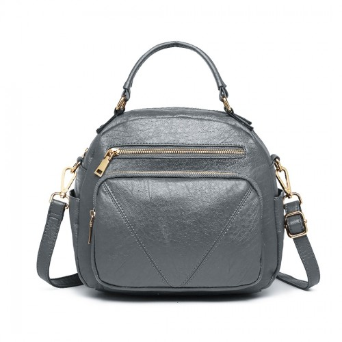 LB6907 - Miss Lulu Bowler Style Shoulder Bag - Grey