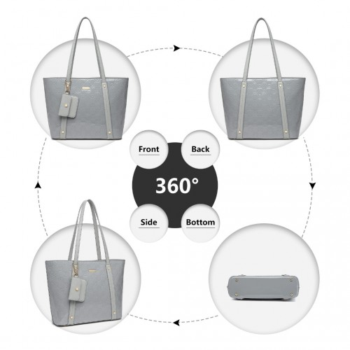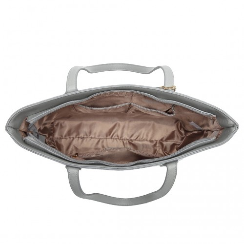 LD2217 - Miss Lulu 4 Pieces Glossy Leather Tote Bag Set - Grey