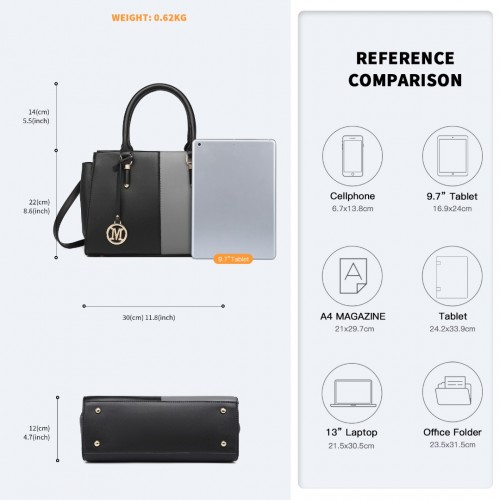 LG2224 - Miss Lulu Vintage Two-colour Patchwork Handbag Tote Bag - Black