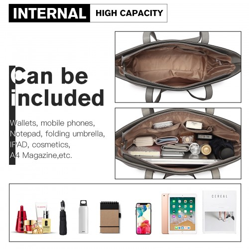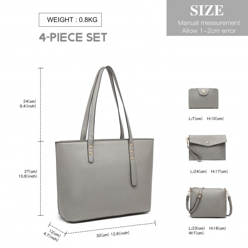 LG6931 - Miss Lulu 4 Piece Handbag Set - Grey