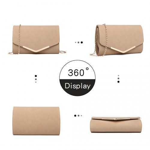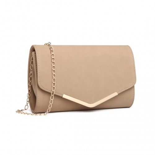 LH1756 - Miss Lulu Leather Look Envelope Clutch Bag - Beige