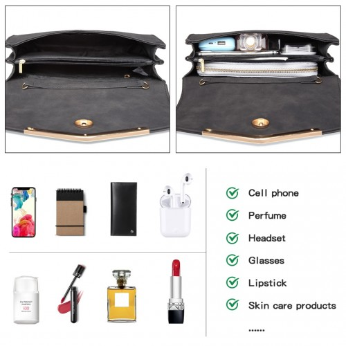 LH1756 - Miss Lulu Leather Look Envelope Clutch Bag - Black