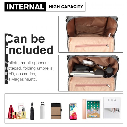 LH2012 - Miss Lulu Large Leather Look Backpack - Grey