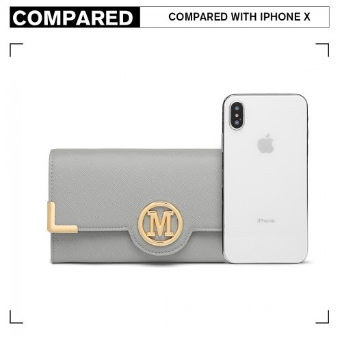 LP2022 - Miss Lulu Leather Look Classic Long Purse - Grey