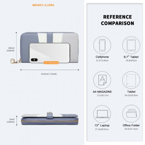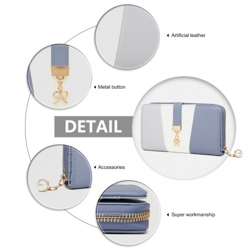 LP2030 - Miss Lulu Tri Colour Women's Leather Look Purse - Azure