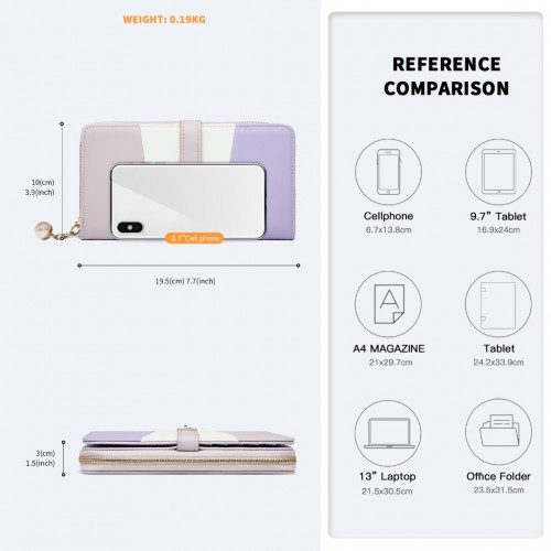 LP2030 - Miss Lulu Tri Colour Women's Leather Look Purse - Purple