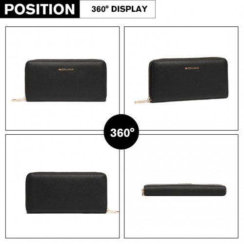 LP2108 - Miss Lulu Zip Closure Ladies Purse Wallet - Black