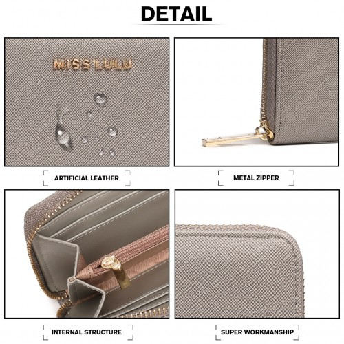LP2108 - Miss Lulu Zip Closure Ladies Purse Wallet - Grey
