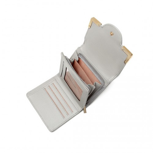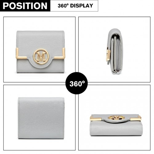 LP2113 - Miss Lulu Leather Branded Snap Closure Wallet - Grey
