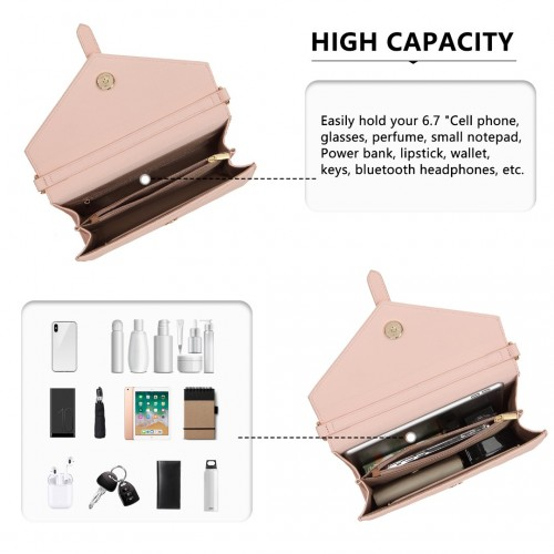 Ample space for your essentials: phone, purse, keys and cosmetics/toiletries.