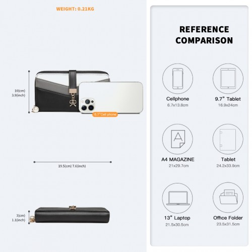 This is a stylish purse, which is a good accessory for your daily life, travel or business.You can hold it in hand or put it in the bag.