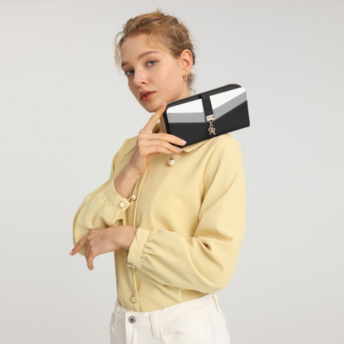 LP2215 - Miss Lulu Mixed Colour Women's Leather Look Clutch Purse - Black