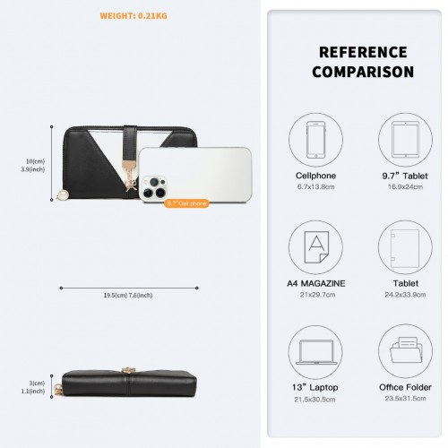 This is a stylish purse, which is a good accessory for your daily life, travel or business.You can hold it in hand or put it in the bag.