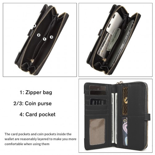 LP2216 - Miss Lulu Two Tone Women's Leather Look Clutch Purse - Black