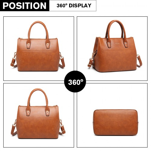 The bag can be carried in two different ways: the top handles and the cross body/shoulder strap.