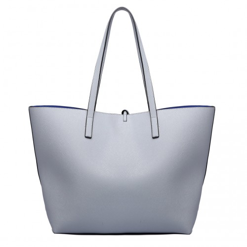 LT6628 - Miss Lulu Women Reversible Contrast Shopper Tote Bag Grey
